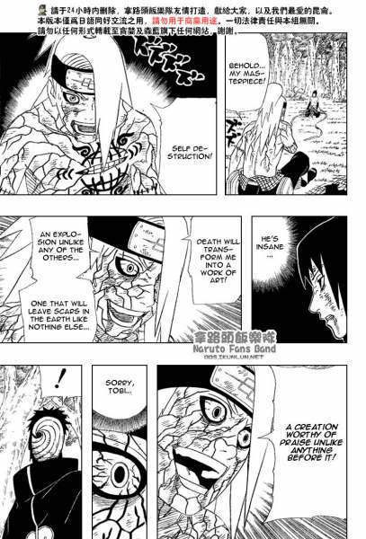 Я поверила в Дейдару, взбесившегося из-за безразличия Саске, потому что это было в характере у подрывника. И какая это была смерть! Красочная схватка, сила, эмоции, безумие и жажда доказать обладателю проклятых красных глаз и постной физиономии то, что искусство выше гендзюцу. Глупый поступок молодого импульсивного шиноби, но до чего красивый и пафосный. он запоминается хотя бы и вызывает чувства.