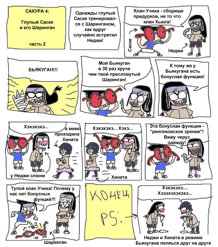 Посмеяться можно)) Хотя бы над стилем рисования. Какой Неджи там зубастый например)