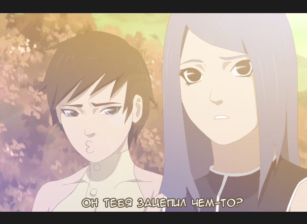 О рисунке: И вот, как всегда, я работаю ночью, ну что за дела? Решила порадовать подругу, нарисовала для неё «скрин». Мой персонаж — слева. Решила нарисовать себя в «Наруту». Тут, конечно, полностью не видно персонажа, но в скором времени я нарисую в полный рост. Всё же скетч уже есть. Приложила оригинал коллаба.
