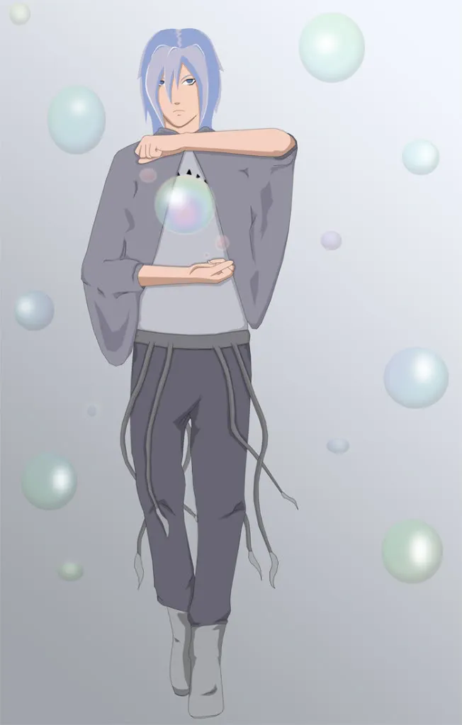 О рисунке: Вот наконец-то и Рокуби в человеческом обличье! Внезапно приспичило нарисовать. Так как я давно уж не лазила в Фотошоп, плюс времени у меня было совсем мало на рисование, возможно, косяки есть в большом количестве, особенно с тенями. Каюсь. Расцветка взята с самого Рокуби (что-то с артов, что-то со скриншотов аниме). То, что он слизняк, не выражает ничего, кроме висячей странной накидки, просто не имею представления, как совместить похожесть на слизня и симпатичность. И я абсолютно не в курсе, с какого перепугу мне захотелось нарисовать «хвосты» таким ремешком. Знаю, у Рокуби не такие хвосты, но мне вот так захотелось. Ну, то, что вокруг него и у него в руках — мыльные пузыри, наверно, и так ясно. В общем, прошу любить и жаловать, Рокуби дэсу!